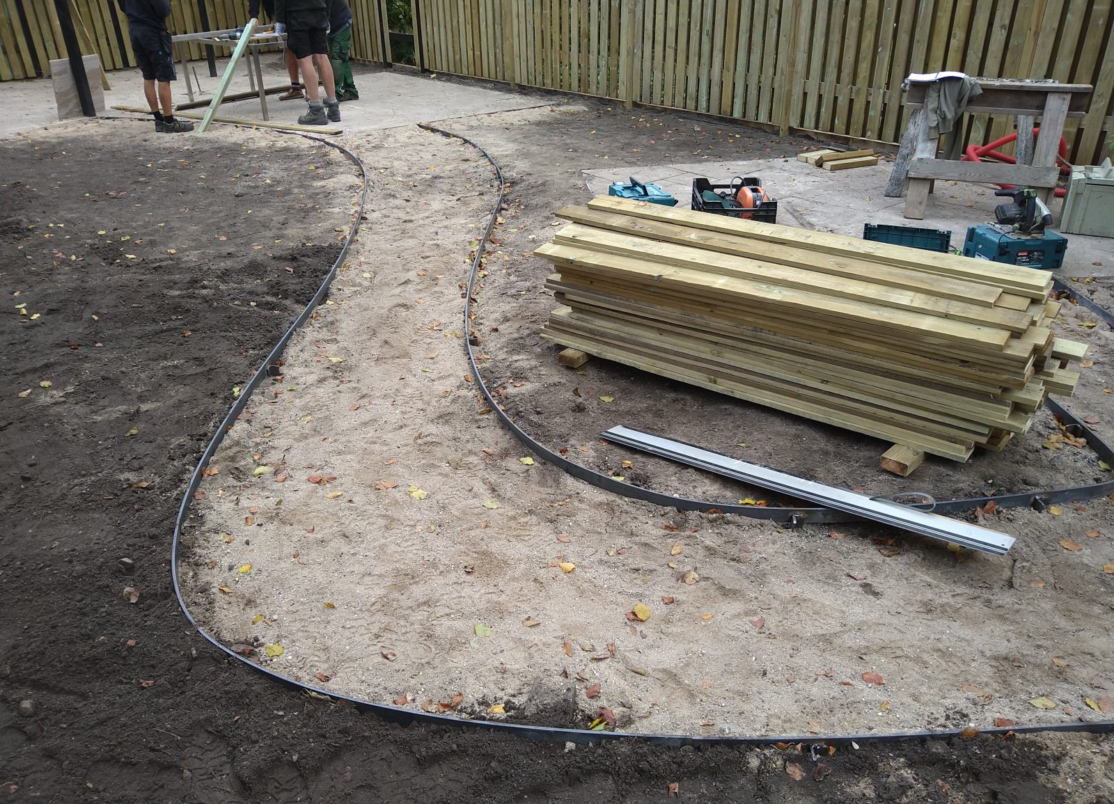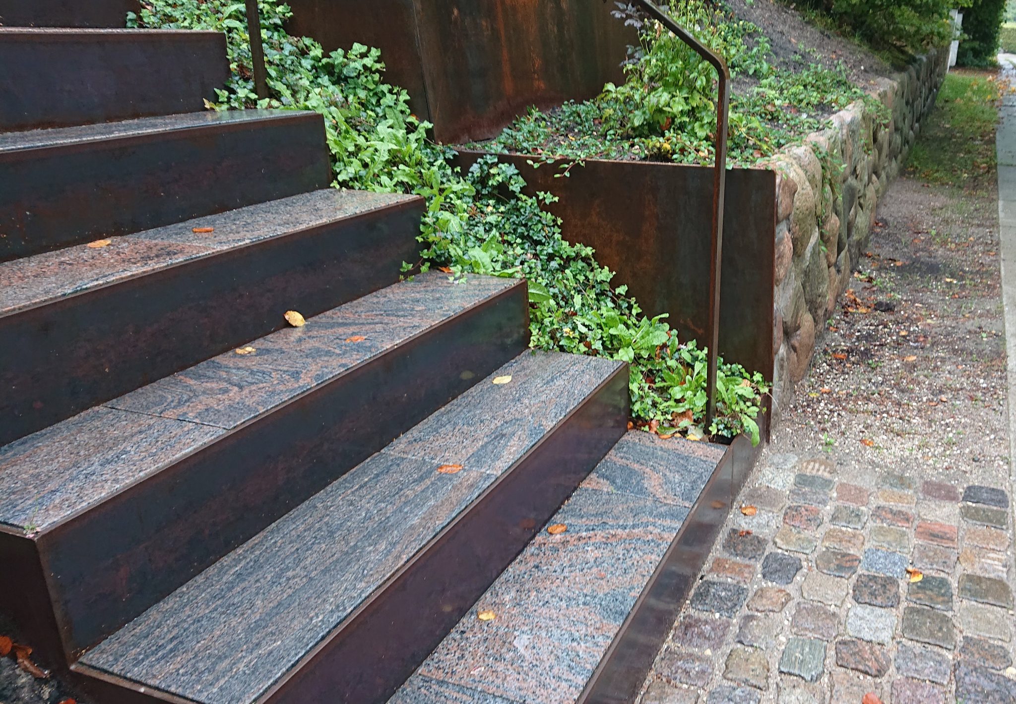 I vores firma arbejder vi med ubehandlet stål i rigtig mange sammenhænge. De fleste af vore ansatte er dygtige til at svejse. Bag alle støttemure, trapper, kanter m.v. er der jo en bærende konstruktion, typisk stålpæle, som er slået i jorden, og som plader og fladstål er svejst til. I visse situationer bruger vi også smede til at bistå os.